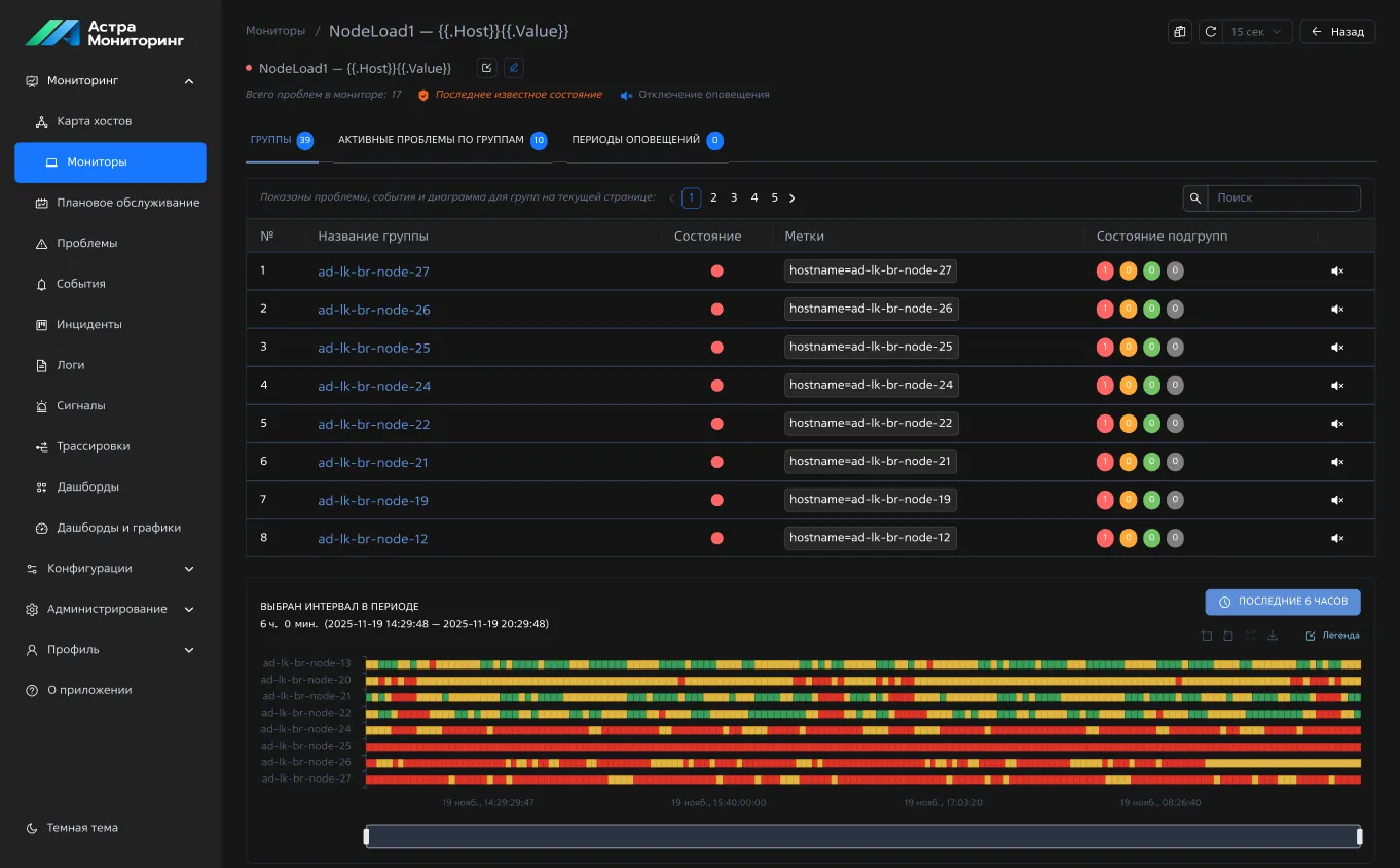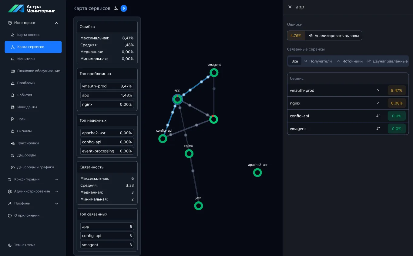 Отслеживание состояния серверов, сети и баз данных, генерация алертов при аномалиях, например при высокой загрузке CPU.