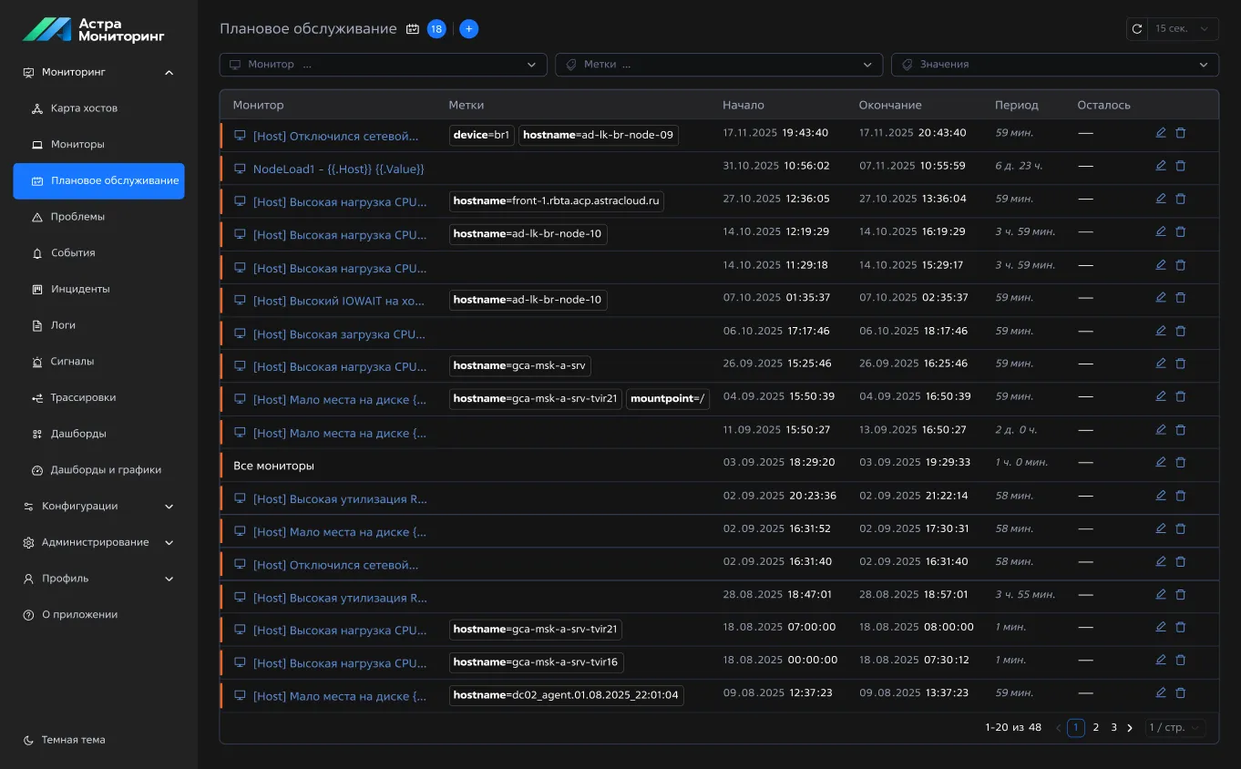 Настройка режима без уведомлений, отключение уведомления о конкретных хостах, правилах здоровья и даже тегах метрик
